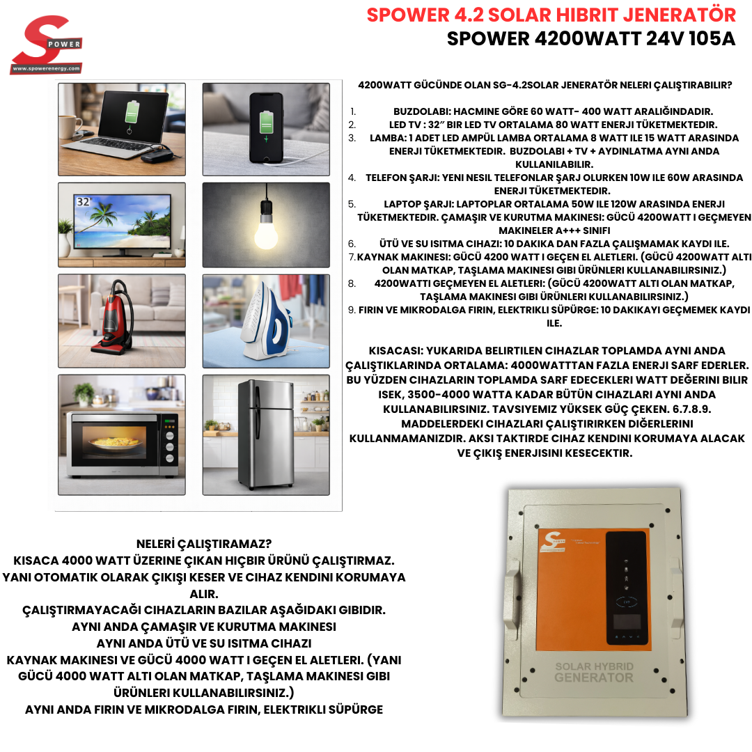 Spower Energy Hibrit Generator SG-4.2 24V 105AH LIFEPO4 Akü Bluetooh